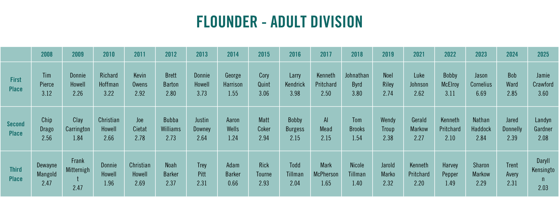 Past Tournament Winners